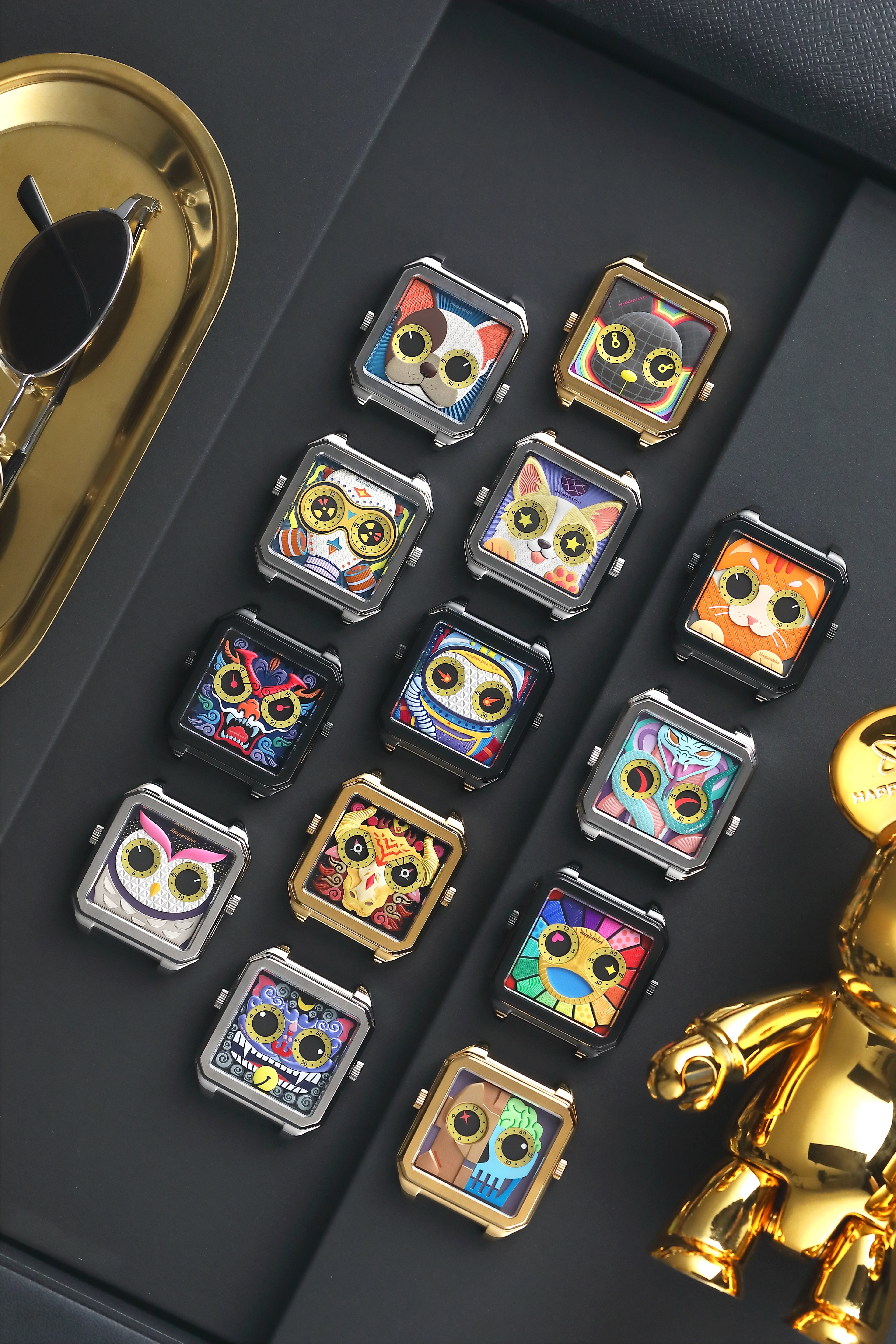 Este reloj transforma tu muñeca en un lienzo en movimiento. Inspirado en la audaz esencia de un girasol floreciente y el arte abstracto, es uno de nuestros relojes más vibrantes y coloridos, con una composición dinámica de colores primarios y formas geométricas que deja una huella impactante.